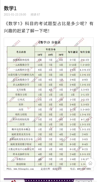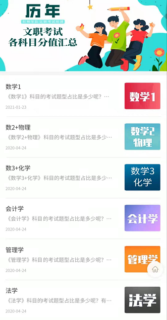 “科目分值”模块,在分析历年试卷的基础上,总结了各专业的考点分布、试题数量,分值大小。包含《数学1》,还有《数学2+物理》《数学3+化学》《会计学》《管理学》《法学》《教育学》……了解“科目分值”板块,找准备考着力点,成绩的提升将不言而喻!