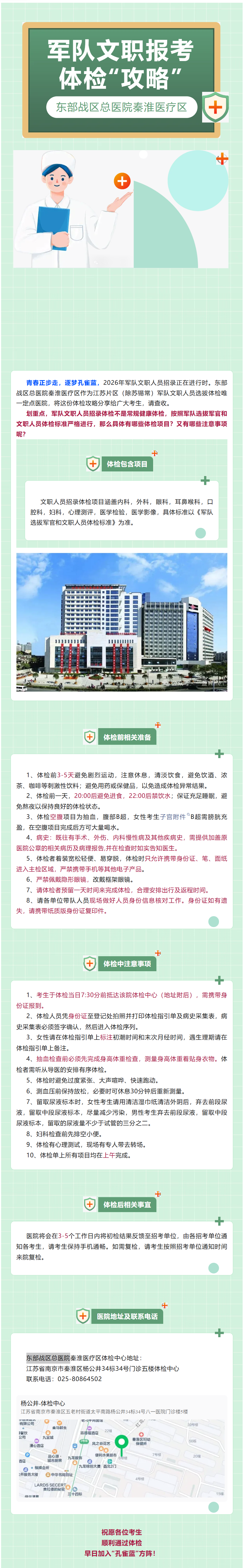 原文标题:一文读懂,东部战区总医院秦淮医疗区文职报考体检“攻略”!(内附体检流程和注意事项)